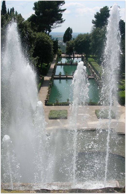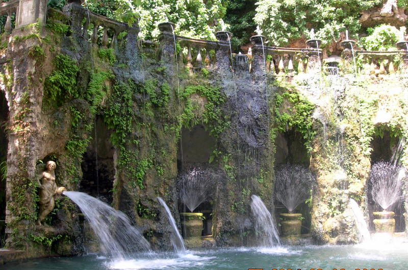L’Allée des Cent Fontaines (Viale delle Cento Fontane) : Une promenade de cent mètres bordée de jets d’eau jaillissant de masques, d’aigles et de lys, symboles de la famille Este.La Fontaine de l’Orgue (Fontana dell’Organo) : Un prodige technologique où le mouvement de l’eau actionne un mécanisme pneumatique jouant de véritables mélodies musicales (à écouter toutes les deux heures).La Fontaine de l’Ovato (Fontana dell’Ovato) : Considérée comme l’un des premiers « théâtres d’eau », elle forme un demi-cercle gracieux sous lequel on peut marcher pour admirer la cascade centrale.La Fontaine de Neptune : La plus imposante et la plus récente (restaurée au XXe siècle), elle domine les trois viviers (Peschiere) où se reflète la silhouette du palais.La Rometta : Une fontaine allégorique représentant « la petite Rome » avec ses monuments miniatures, symbolisant le lien indéfectible entre le cardinal et la Ville Éternelle.